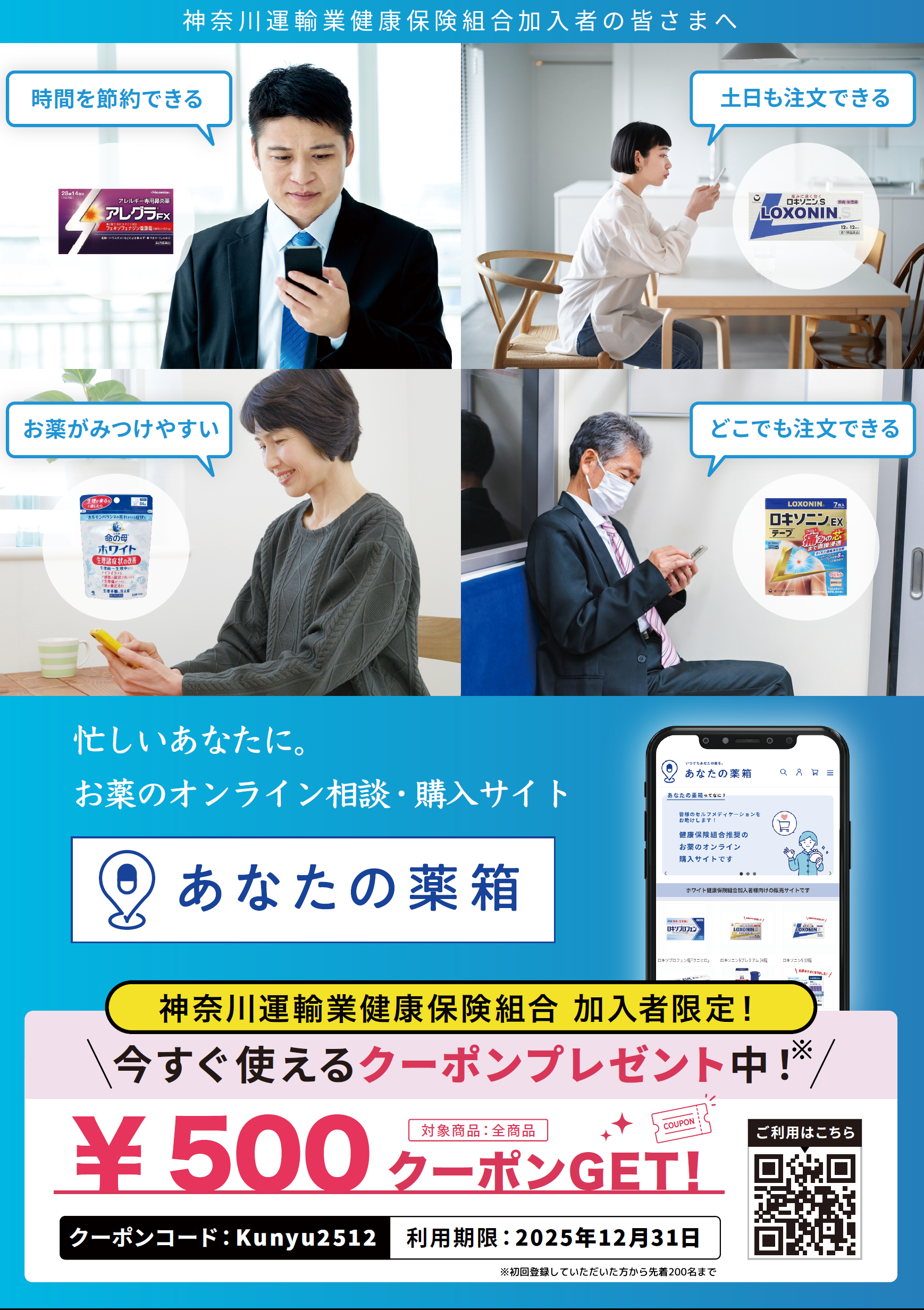 当健康保険組合では、加入者の皆さまの「セルフメディケーション」のサポート、および「市販薬(OTC医薬品)の活用」を促進するため、加入者様専用の市販薬購入サイト『あなたの薬箱』を開設いたしました。